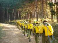 Los bomberos luchan contra un incendio forestal en Santa Eulalia de Oscos. Asturias