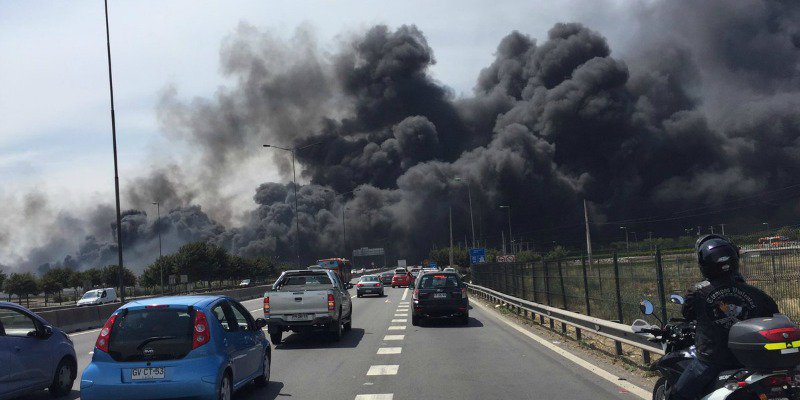 Santiago: Incendio en acopio de neumáticos en Comuna de Pudahuel