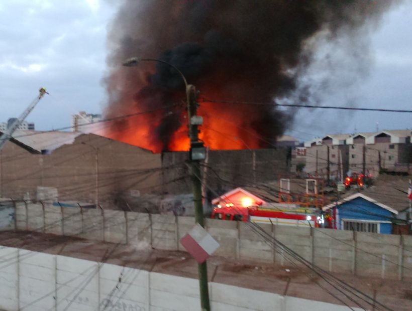 Violento incendio destruyó un galpón en el sector norte de Iquique