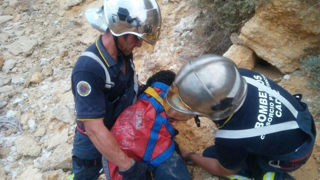 Bomberos de Conil rescatan con vida a un perro que cayó por un acantilado desde 30 metros de altura