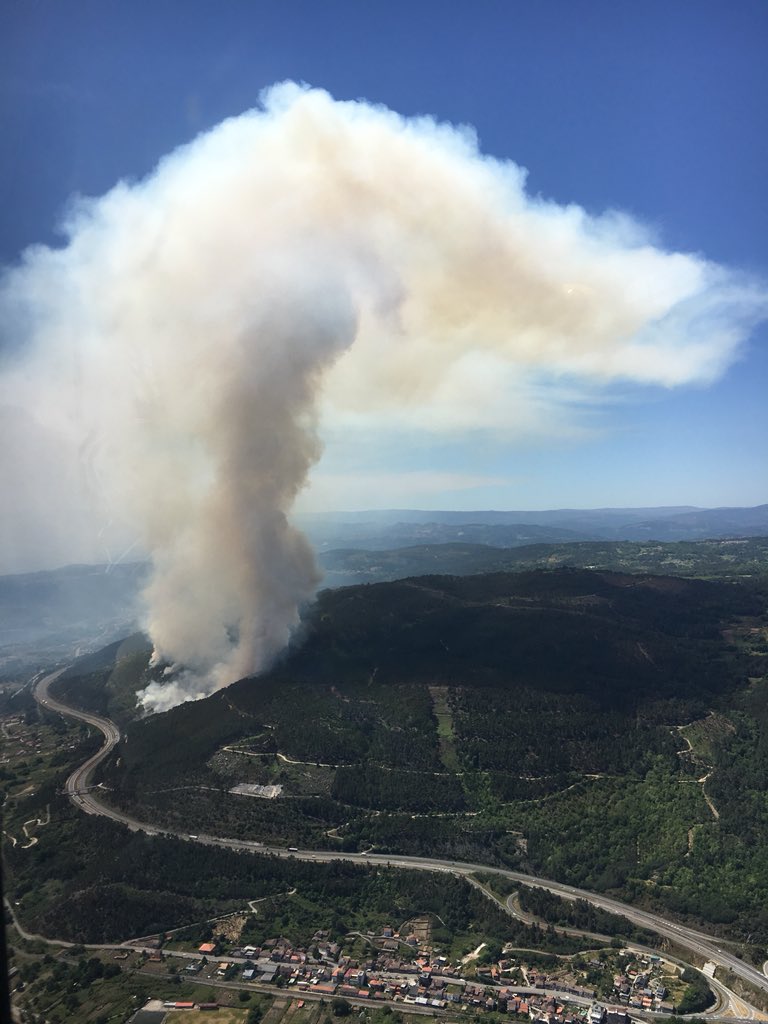 Calcinadas 20 hectáreas en un incendio en Ourense que habría comenzado por un reventón en un tráiler