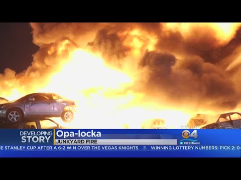 Incendio de grandes proporciones en chatarrera en Opa-locka. Florida