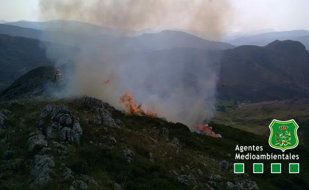 Dos brigadas y un helicóptero trabajan en la extinción de un incendio en Quintanilla de Babia