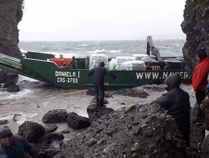 Tres tripulantes iban en su interior: barcaza encalló en isla Tac