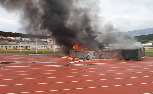 Un incendio intencionado calcina las colchonetas de saltos del estadio Fernando Hierro de Vélez-Málaga