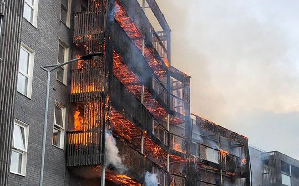 Incendio destruye edificio de departamentos en Barking. Inglaterra