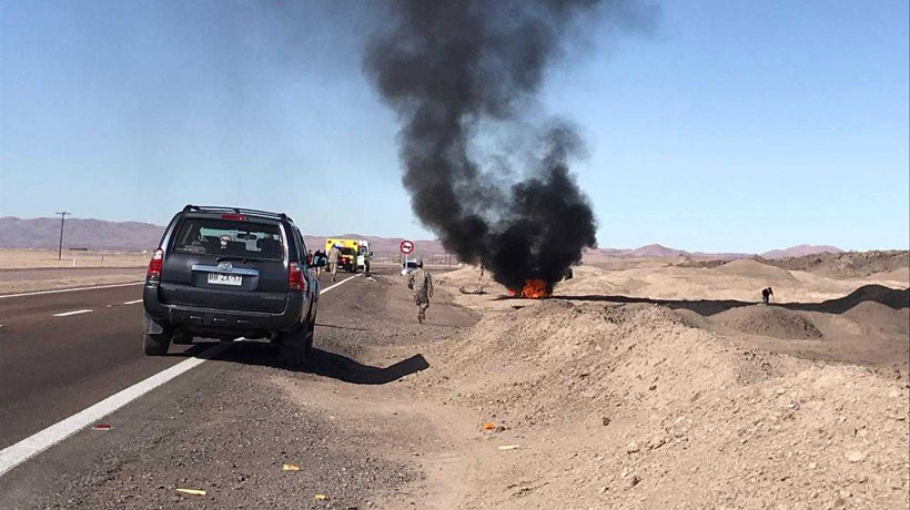 Iquique. 5 lesionados en volcamiento e incendio de vehículo
