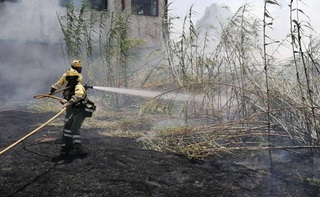 Los bomberos logran estabilizar un incendio próximo a unas viviendas en Torrealta. Molina